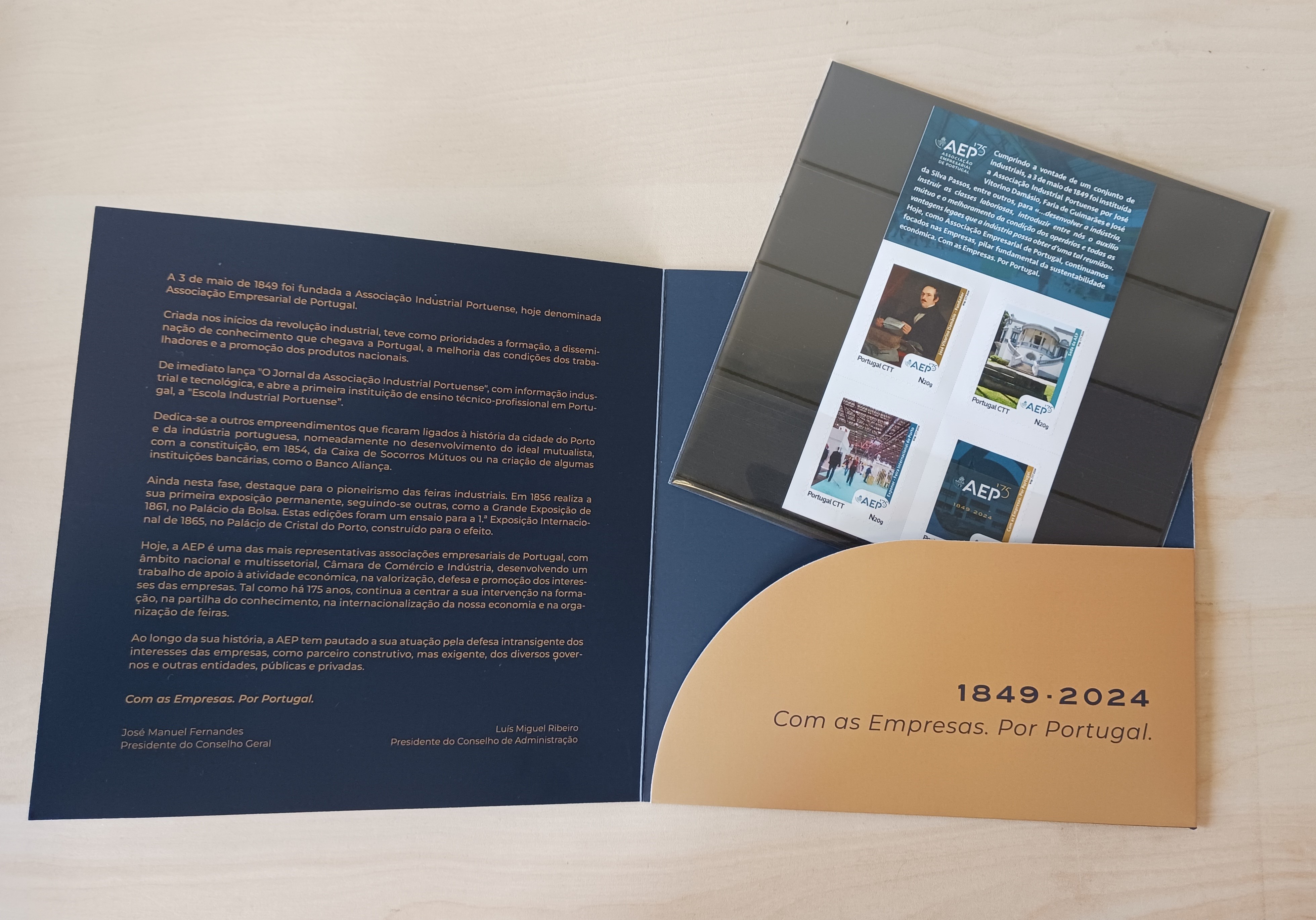 Edição filatélica especial, composta por quatro selos que evocam aspetos distintos da longa vida da associação: a imagem do fundador José Vitorino Damásio; a sede da AEP, à Avenida da Boavista, no Porto; um aspeto de feira da Exponor - Feira Internacional do Porto; e um selo específico sobre os 175 anos da AEP.